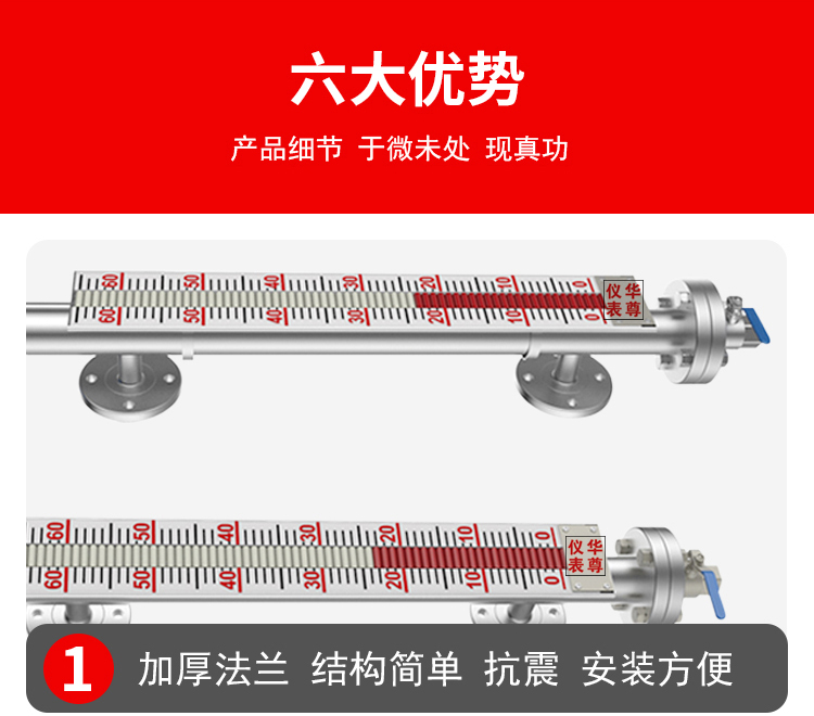 2、被測介質(zhì)與指示結(jié)構(gòu)完全隔離,密封性能好,防泄露、適應(yīng)高壓、 高溫、腐蝕條件下的液位測量,可靠性高、使用壽命長。